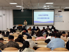 大会首先进行学生工作交接。原辅导员刘强珺作深情告别,回顾了与同学们朝夕相处的时光,表达了不舍与牵挂,感谢同学们的陪伴与支持,并寄语大家珍惜大学时光、脚踏实地、奋勇拼搏,在光电领域实现自我价值。