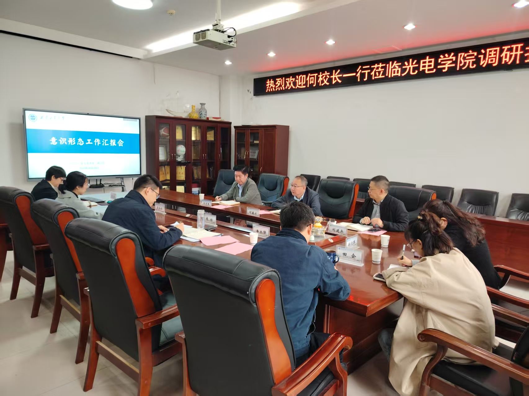 1029日,副校长何春水一行光电工程学院专题调研并指导校友工作与意识形态工作。党委宣传部部长刘建兵,校友总会办公室主任、教育发展基金会理事长王守民参加调研。调研座谈会学院党委书记周顺主持。