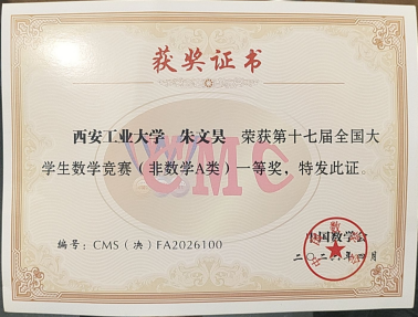作为国内极具影响力的本科生数学学科赛事,本次竞赛由中国数学会主办、四川大学协办,吸引了全国千余所高校、三十余万名学生踊跃参与。经过多轮严格遴选,仅有千余名学子成功晋级全国决赛,其中非数学A类赛道一等奖名额仅120个,获奖比例极低,竞争异常激烈。朱文昊同学凭借清晰的解题思路与扎实的知识储备顺利突围,更得到中国数学会理事长、中国科学院席南华院士的亲笔签名勉励,这既是对其个人努力的高度认可,也彰显了欧洲杯