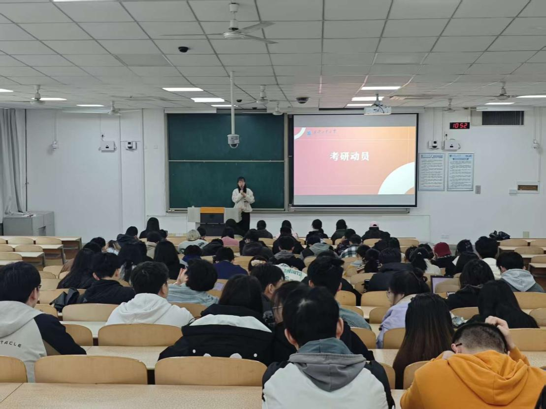 召开了2026届考研动员大会。会议由学院学工办主任刘强珺主持,2026届辅导员李俊洁及考研学生参会,为即将开启的“考研攻坚战”注入强心剂,也为学子们的备考生活拧紧“安全阀”。