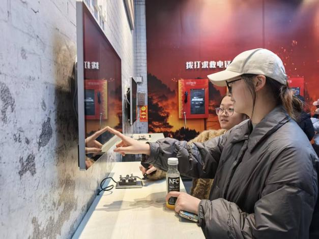 参观过程中,最吸引师生的是“安定之营”实训区。大家踊跃参与防空警报模拟、摩斯密码发送等互动体验项目。通过沉浸式的实训操作,抽象的人防知识变得可触可感,同学们在实践中熟练掌握了战时空袭预警与应急掩蔽的流程以及自救互救的核心技能。