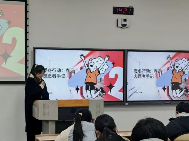 王浩然分享了在宝鸡市北城社区开展志愿活动经历,讲述如何将专业知识与志愿服务相结合,收获孩子们和家长们的认可,真切体会到志愿服务的价值所在;闫昊分享作为暖冬行动志愿者的难忘经历。耐心协助年迈大娘完成购票流程,悉心护送盲人旅客安全进站,“每一次伸手相助,都是对‘家’的守护,这种被需要的感觉,让志愿精神在心中愈发坚定。”闫昊的分享引发了现场观众的强烈共鸣。